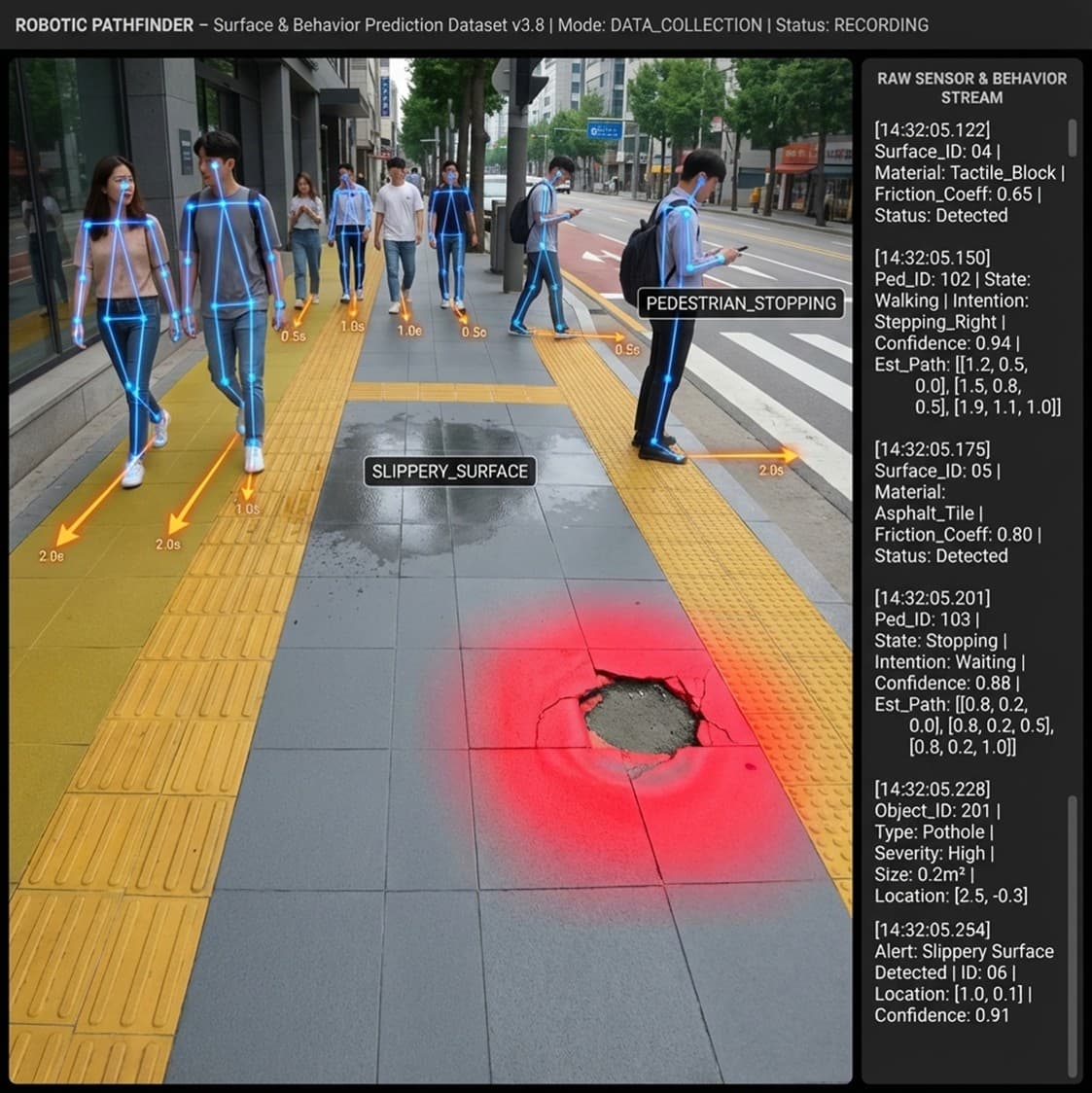 인도 주행 로봇을 위한 지면 상태 및 보행자 행동 예측 키포인트 데이터 납품.