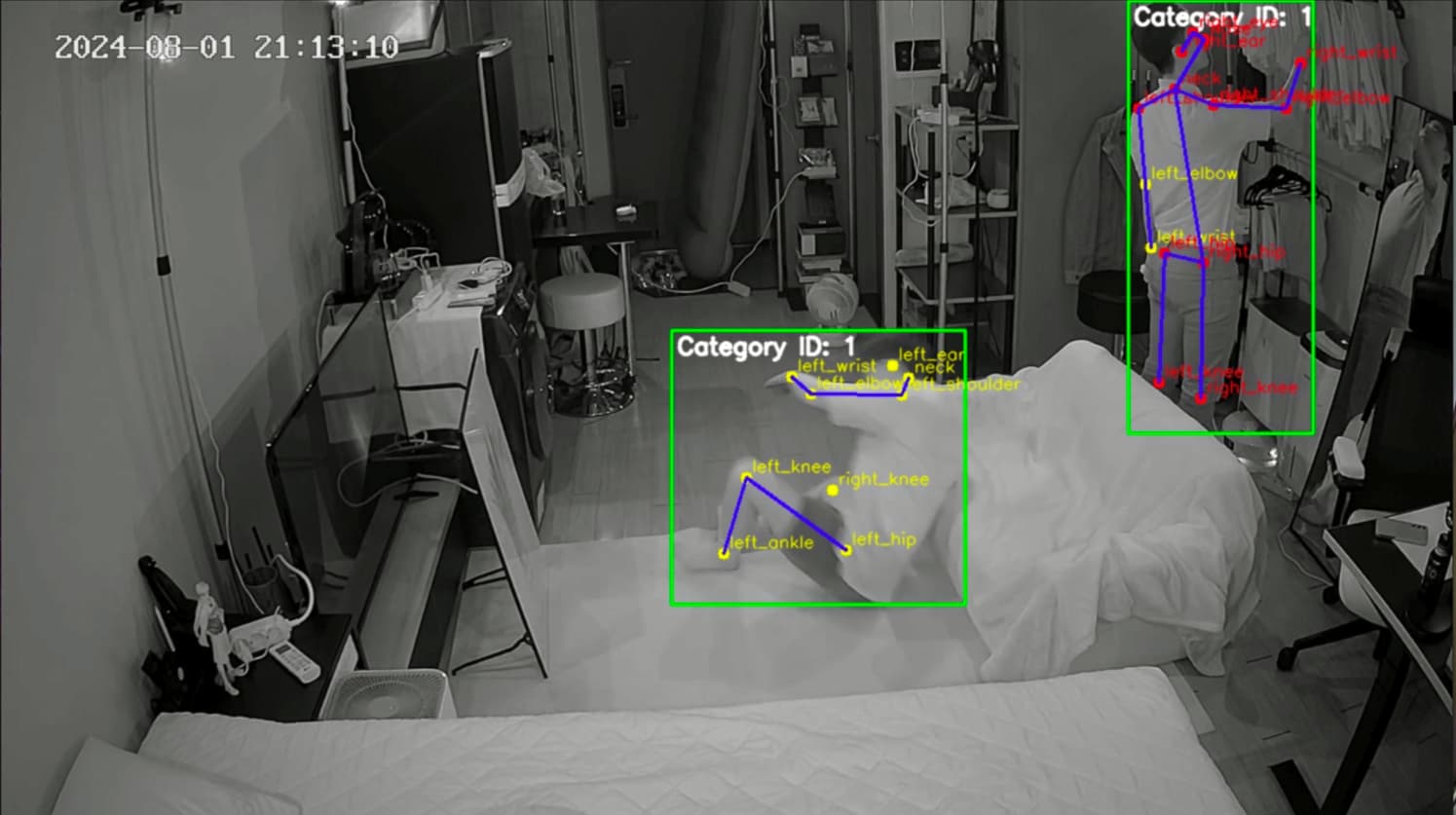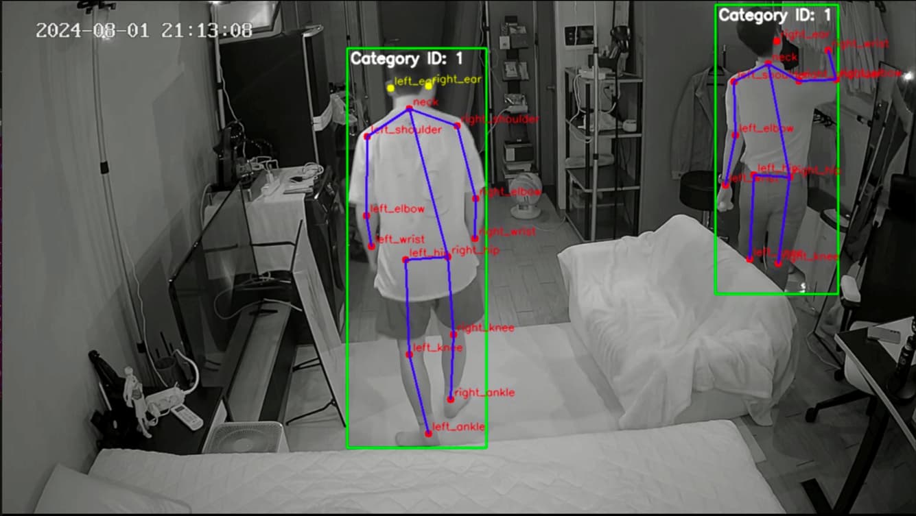• 행동 인식 및 보안: 낙상, 폭력, 실신, 배회 등 이상 행동 감지를 위한 전신 관절 추출.